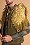Featuring an olive bundi jacket shirt in cotton matka with handwork. It is paired with pants and a cotton crepe rayon shirt. Style it with shoes for a festive occasion, cocktail or sangeet ceremony.