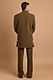 Featuring an olive indowestern in crepe base with handwork. It is paired with pants. Style it with mojaris and malas for a wedding, engagement or sangeet ceremony.