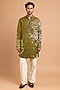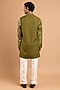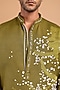 Featuring a olive green kurta in cotton crepe rayon base with handwork. Accentuate it with pants and kolhapuri sandals for a festive celebration, mehendi or wedding ceremony.