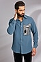 Featuring a petrol blue shirt in lachka and armani base. Style it with pants and shoes for casual outing or get-together.
