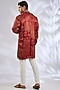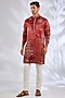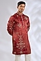 Featuring a red kurta in cotton rayon base with embroidery. Style it with trousers, a pair of kolhapuris and a bracelet for festive occasions or sangeet ceremony.