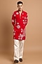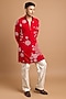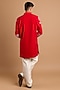 Featuring a red kurta in lachka and armani fabric base with handwork. Style it up with pants and mojaris for a festive occasion, wedding or mehendi ceremony.