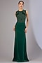 Featuring an emerald green gown in crepe base with a high-neckline and bead hand embellishment. Accentuate it with dangler earrings, a chic clutch and block heels for evening soirees.