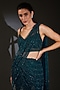Featuring a galaxy blue saree gown in tulle base with tonal sequins, beads, and crystal embroidery. It features a fishtail skirt and an embroidered blouse. Perfect wear for festive occasions or engagement ceremonies.