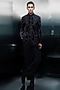 Featuring a black bandhgala in cotton velvet base with a mandarin collar and embroidery. It is paired with pants. Style it with a pair of loafers and a watch for a wedding or sangeet ceremony.