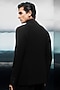 Featuring a black tuxedo in crepe base with beaded lapel. It is paired with pants. Style it with a pair of loafers, a bow and a watch for a reception or cocktail ceremony.