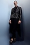 Featuring a black hand-textured jacket in matka silk base with draped panels detail. It is paired with a sheer mesh kurta. Style it with pants and pair of loafers for a sangeet or cocktail ceremony.