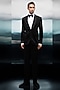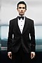 Featuring a black tuxedo in velvet base. It is paired with pants. Style it with a pair of loafers, a bow-tie and a watch for a reception or cocktail ceremony.