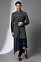 Navy Blue Viscose Dupion Embroidered Sherwani Set