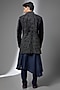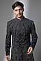 Featuring a navy blue sherwani in viscose dupion base with pearls, metal and silk thread embroidery. It is paired with a silk kurta and pants. Style with mojaris and a watch for a wedding, sangeet or engagement ceremony, exuding traditional charm and elegance.