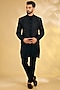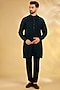 Featuring a french navy bandhgala jacket in dupion silk base with embroidery. It is paired with a kurta and pants. Style it with a match and mojaris for a wedding or sangeet ceremony, exuding traditional charm and elegance.