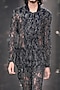 Featuring a french navy blue handcrafted jacket in tulle base with crystal and metallic bead embroidery. It is paired with matching pants. Perfect wear for cocktail events.