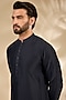 Featuring a navy blue kurta in cotton silk base. Accentuate it with pair of mojaris for festive occasions or pooja ceremonies.