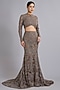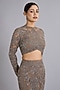 Featuring a mocha brown skirt in tulle base with crystal and sequins embellishments. It is paired with a top. Accentuate it with statement jewellery and heels for a wedding, sangeet ceremony or cocktail soirees.
