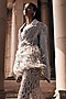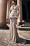 Featuring a mocha mousse dress in tulle base with feather and pearl embellishment. It is paired with an embroidered skirt. Accentuate it with statement jewellery and heels for a complete look.