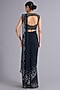 Navy Blue Tulle Sequins Embellished Draped Gown Saree Set