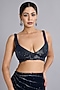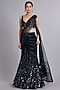Navy Blue Viscose Crepe Sequins Embellished Draped Saree Set