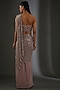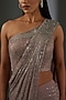 Featuring a nude draped saree in silk georgette base with metallic bead embellishments. It is paired with a matching blouse. Perfect wear for festive occasions or wedding ceremonies.
