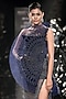 Featuring a pacific blue sculpted dress in satin and tulle base with silk cords, cut beads and 3D sculpted layer embellishment. Style it with statement earrings and heels for cocktail parties.