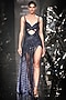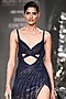 Featuring a pacific blue gown in tulle base with a cutout bustier and crystal embellishments, including a dramatic slit. Style it with a pair of heels and dangler earrings for cocktail parties.