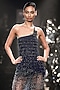 Featuring a pacific blue one-shoulder top in tulle base with tonal crystal and cut bead embroidery. It is paired with a silk tulle asymmetric mermaid fit skirt having metallic geometric detailing and a trail. Style it with dangler earrings and heels for cocktail parties.