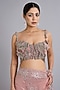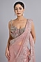 Featuring a pink fishtail lehenga saree in tulle base. It is paired with a blouse having floral embroidery. Accentuate it with statement jewellery and heels for a wedding, sangeet ceremony or cocktail soirees.