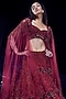 Featuring a french red lehenga in tulle base with geometric artwork, tonal sequins and crystal bead embellishments. It is paired with a blouse and dupatta. Style it with dangler earrings and stilettos, great for wedding or cocktail ceremonies.