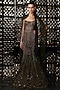 Featuring a seaweed olive gown in tulle base with sequins and beaded embroidery. It is paired with a matching cape having tassels.