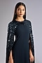 Featuring a storm blue dress in georgette base with 3D embroidery and an attached cape. Accentuate it with dangler earrings and block heels for evening soirees.