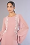 Featuring a swiss rose pink kaftan in silk georgette base with voluminous puffed sleeves, loop button closure detail and embroidery. Accentuate it with dangler earrings, a chic clutch and wedges for evening soirees.