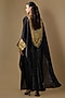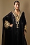 Featuring a black kaftan in organza tissue base with embroidery. It is paired with a slip and skirt. Accentuate it with zircon earrings and heels for festive occasions.