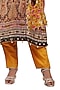 Featuring a multi-colored kurta in crepe base with digital print, gota, shells and aari embroidery. It is paired with silk pants, a chiffon and a crepe potli bag. Accentuate it with polki jewellery and heels for a wedding or sangeet ceremony.