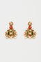 Gold Finish Coral Synthetic Stone & Peacock Motif Enameled Dangler Earrings