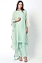 Featuring a mint green kurta in organza base with zardosi and moti embroidery. It is paired with matching cotton silk pants and an organza dupatta having mukaish embroidery.