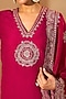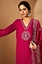 Featuring a fuchsia pink kurta in pure silk organza base with zari embroidery. It is paired with straight pants and a dupatta. Accentuate it with statement earrings and heels for festive occasions.