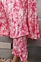 Featuring a blush pink kurta in shimmer silk base with puffed sleeves and print It is paired with matching straight pants.