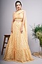 Featuring a yellow high waist skirt in chiffon base with print. It is paired with matching blouse and an attached dupatta .