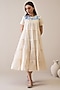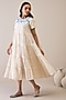 Ivory & Blue Handloom Silk Organza Floral Embroidered Dress
