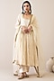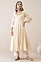 Ivory Cotton & Silk Organza Mirror Embroidered Kalidar Kurta Set