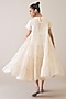 Ivory & Pink Handloom Silk Organza Floral Embroidered Dress