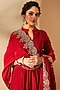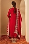 Featuring a red kurta in organza and viscose raw silk base with zari thread embroidery. It is paired with pants and an embroidered dupatta. Accentuate it with statement jewellery, a clutch and block heels for festive or pre-wedding ceremonies.