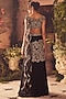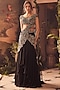 Featuring a black draped skirt saree in georgette base with floral hand embroidery. It is paired with a net embroidered blouse. Accentuate it with silver jewellery and embellished heels for a sangeet or cocktail ceremony.
