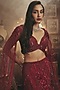 Featuring a deep crimson red lehenga in net base with beads and sequins embellishments. It is paired with an embellished blouse having attached drape detail. Accentuate it with swarovski or zircon jewellery, embellished heels and a clutch for a bridal look. Perfect wear for your sangeet or cocktail ceremony.