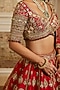Deep Red Raw Silk Golden Thread Embroidered Lehenga Set