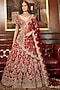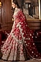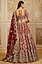 Roqa presents a red lehenga in raw silk base with zardosi, resham, sequins lotuf-motif and 3D bird hand embroidery. It is paired with a raw silk embroidered blouse and a net dupatta. Elevate your bridal look with statement polki jewellery, a sleek bun, and bold makeup, perfect for pheras, receptions, and traditional wedding rituals.