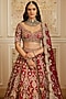 Deep Red Raw Silk Lotif Motif Hand Embroidered Lehenga Set
