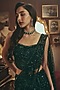 Featuring an emerald green lehenga in net base with beads and sequins embellishments. It is paired with an embellished blouse and an embellished drape. Accentuate it with swarovski or zircon jewellery, embellished heels and a clutch for a bridal look. Perfect wear for your sangeet or cocktail ceremony.