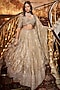 Roqa presents a golden lehenga in pure tissue base with paisley motif, zardosi, sequins and resham hand embroidery. It is paired with an embroidered blouse having a wrap-style neckline and a dupatta. Elevate your bridal look with statement polki jewellery, a sleek bun, and bold makeup, perfect for pheras, receptions, and traditional wedding rituals.
