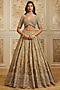Golden Pure Tissue Zardosi Hand Embroidered Lehenga Set