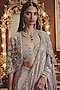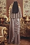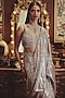 Featuring a grey draped saree in sequins net base with bead embellishments. It is paired with a net blouse and a net cape. Accentuate it with zircon or pearl jewellery and block heels for a sangeet or reception ceremony.